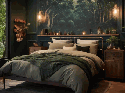 These rich hues create a peaceful retreat, and when incorporated through bedding, accent walls, or decorative elements, they can set the tone for a tranquil environment. Pairing these colors with natural materials like wood or rattan furniture further enhances the feeling of relaxation, making the bedroom a soothing sanctuary.