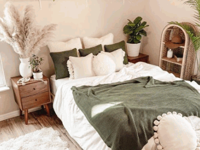 Incorporating plants and greenery infuses the bedroom with natural elements and a sense of freshness, adding to the coziness and tranquility of the space while creating an inviting atmosphere.